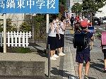 本日より、東小正門で、中学生がお邪魔して「小中合同のあいさつ運動」を始めました。