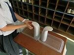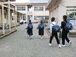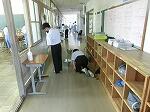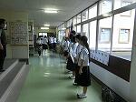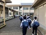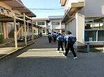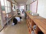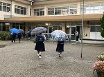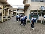 雨の一日。校内での朝のあいさつ運動が行われていました。今学期は明日が終業式。昼休みは係活動として給食着の片付けが行われていました。