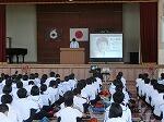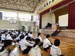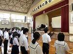 全校集会があり、夏休みに向けての話を担当職員が行いました。①命を大切にすること ②学びを止めない夏にすること ③治療を済ませ、生活リズムを崩さないこと 等の話がありました。