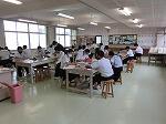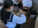 今日は、音楽の授業はギターの練習です。みんな真剣に指を動かしていました。家庭の授業は手芸。針に気をつけながら子どものおもちゃづくりをしていました。美術は友人の絵をタブレットで撮影して、鑑賞していました。技術の作品が廊下に展示してありました。