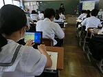 学校は、様々な理由により急に自習になることもあります。真ん中の写真は、その自習の様子ですが、物音はせず、真剣に課題に取り組んでいました。さすが本校の3年生です!!生徒たちはずいぶんとタブレット利用に慣れてきたようです。