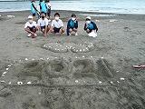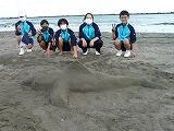 昨日の1年生体験活動の午後の部は、海岸で「砂の造形」を行い、各クラス班ごとに作品を作りました。短い時間でしたが、アイデアを凝らした素晴らしい作品が出来上がりました。