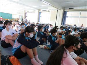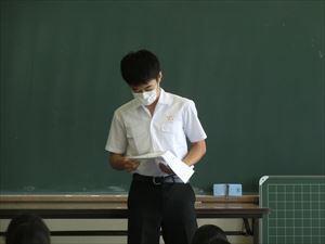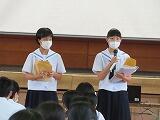 学年集会では、それぞれ別の会場に分かれ、学年代表生徒が2学期の抱負を堂々と立派に述べました。
