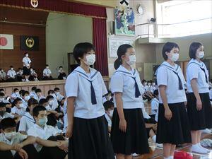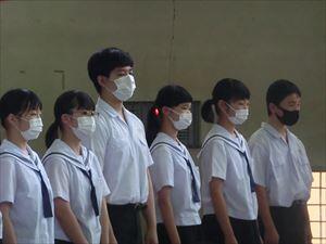 17日(金)に「宮崎県中学校特別スポーツ大会2020」と「吹奏楽サマーコンサート」の激励式を体育館で行いました。