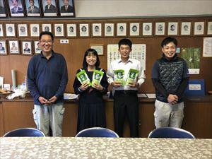11月4日(水)に児湯茶業農業組合様から、緑茶(ティーバッッグ)を寄贈していただきました。児湯5町の児童生徒に、児湯産の新鮮なお茶を一人二袋ずついただき、東中では生徒会の代表が受け取りました。生徒には明日配布予定です。児湯茶業農業組合のみなさま、本当にありがとうございました。