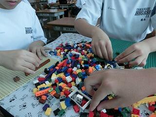 各グループ、課題として与えられた気候に住む人々の生活を、レゴブロックを使って表現していきます。その過程で、学習内容の復習ができるとともに、仲間と協力して無機質なもの(レゴブロック)から意味のあるものを作り出し、それを自分の言葉で説明することで、協調生と創造性が育まれていくそうです。授業を見ながら、これらのことを実感することができました。とても有効な学習形態だと思いました。