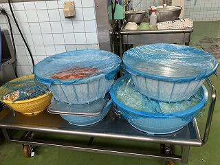 台風接近に伴う明日からの臨時休業の影響で、今日の給食はメニューが急遽変更になりました。キムタクご飯、中華コーンスープ、ホキ天玉揚げ、ゆでキャベツ、牛乳 でした。こんな事態急変にも素早く対応してくださる給食センターの方々に感謝です。本当にありがとうございます。2学期もおいしい給食を楽しみにしています!