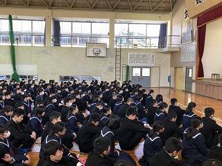 始業式では、各学年と生徒会の代表の生徒たちが3学期の抱負を述べました。