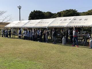 先週の金曜日に素晴らしい天候のもと、駅伝・ロードレース大会が開催されました。生徒達の頑張る姿とともに、もう一つの楽しみはPTAの方々による「豚汁」の振る舞いです。