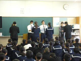 新規採用の染矢先生の研究授業がありました。毎日毎日、「どうすれば生徒達に、給食を作っている人たちの思いを考えさせられることができるのか」を悩みながら教材研究をしていました。当日は、学級担任の先生と一緒に、活気があり、そして「なるほど」と生徒のうなずきが多い授業を展開していました。生徒たちもたくさん発表をしていました。みんな好き嫌いがなくなるかな?