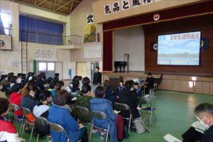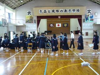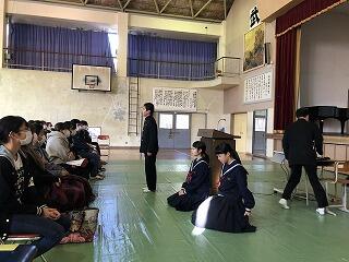 3年生は、本日実施予定の、町音楽祭の入退場の確認等を行いました。