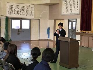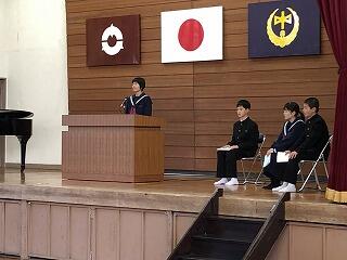 始業式では、各学年と生徒会の代表の生徒たちが3学期の抱負を述べました。