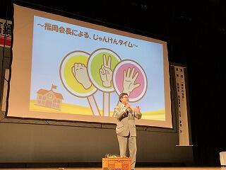 12日(土)、上記の会が開催されました。本校からは、家庭教育学級の発表を家庭教育学級長である村崎さんが、研究所の発表を押川教諭がしました。どちらも、充実した発表内容で、取り組んできたことが分かりやすくしっかりとまとめられていました。また、恒例の福岡会長によるじゃんけん大会で楽しいひと時を過ごせました。