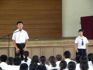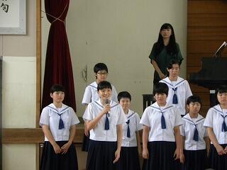 本校は合唱部はありませんので、有志による合唱団ですが、1学期の昼休みから練習を開始し、夏休みも熱い中練習を頑張った結果、今日の発表も素晴らしいもので、暑さを忘れ、歌声に聴き入るひと時でした。