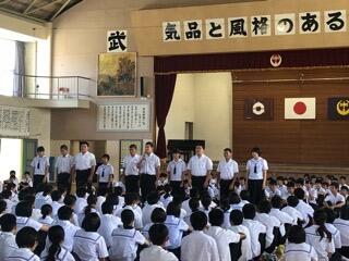 22日(日曜)から開催される第69回宮崎県中学校総合体育大会に出場する高鍋東中選手団の激励式を行いました。