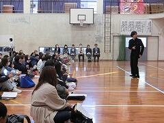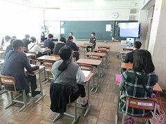 今日の午後に、来年度入学予定の児童(小学6年生)とその保護者が来校し、説明会が行われました。中学生の授業を参観した後、体育館で生徒会のみんなによる学校紹介や中学校生活の説明、入学案内等が行われました。小学生たちは、最初は緊張した様子も見られましたが、とても一生懸命に話を聞いてくれていました。来年の入学が楽しみです。一緒に頑張っていきましょうね。