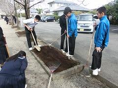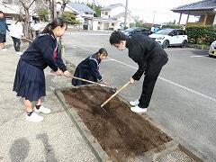 花の植え替えに向けて、各クラスの環境委員会の生徒たちが、花壇やプランターの土を耕し、肥料をすき込んでくれました。昼休みの作業で生徒たちには申し訳なかったのですが、みんな積極的に作業をしてくれました。来週に花を植える予定です。
