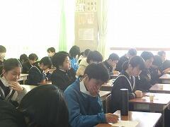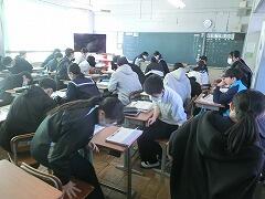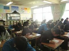 来週の私立高校入学試験を皮切りに、いよいよ本格的な受験シーズンに突入します。今日はその事前指導が行われました。一足早く試験を受けた生徒もいますが、今回は多くの生徒が受験するとあって、全体的に雰囲気が引き締まっていたように感じました。試験や面接に対して、これまで準備してきた力をしっかり発揮してきてほしいと思います。頑張れ!3年生!