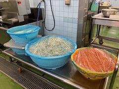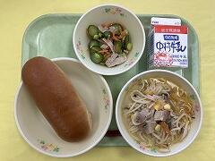 今日の給食は、町内の中学3年生によるリクエスト献立でした。メニューは、黒糖パン、麺類リクエストNo.1の焼豚ラーメン、青豆サラダ、牛乳 でした。焼豚ラーメンは、できるだけ麵がのびないように提供の直前に麵を入れるという配慮をしてくださっているとのこと。調理員の方々、本当にありがとうございます。今日も、最高においしい焼豚ラーメンでした。ごちそうさまでした。