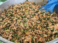今日の給食は、ひむか地産地消の日献立。メニューは、ひむか丼(麦ご飯)、れんこんサラダ、牛乳 でした。ひむか丼は、お肉とたっぷりの野菜が入っていて、味・食べ応えともに最高でした。サラダのれんこんもシャキシャキで、これまたおいしかったです。