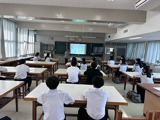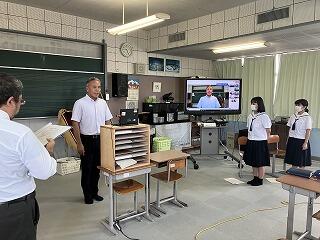 38日間の夏休みも終わり、今日は2学期始業の日でした。今回も熱中症予防のため、始業式はオンライン形式で実施しました。2名の代表生徒が夏休みを振り返るとともに2学期に向けた抱負を発表しました。体育大会や合唱コンクールなど、多くの学校行事が行われる2学期、2人とも仲間と協力して成功させたい、盛り上げたいと力強く述べてくれました。本当に頼もしい限りです。