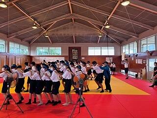 モーリスギターで有名なモリダイラ楽器様から、ギターをいただきました。週末に開催されるイベントのために来町されていた同社関係者の方々が、地元の中学生にもっとギターに親しんでほしいということでプレゼントしてくださったもの。代表生徒が、いただいたギターで一曲披露する場面もあってとても盛り上がりました。これから学校で大切に活用していきたいと思います。