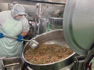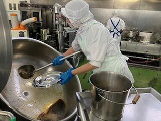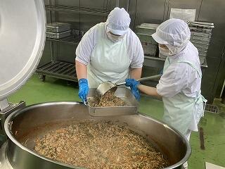 最後にカレーを作っているところです。たくさんの工程があって、給食ができるんですね。調理員の皆さん、いつもありがとうございます。