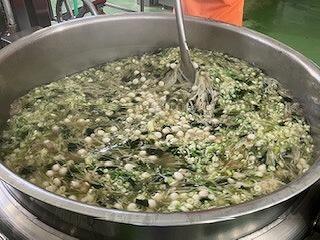 今日の給食は、キムタクご飯、いももち汁、納豆サラダ、牛乳 でした。みんなが大好き、キムタクご飯ですが、納豆サラダも生徒たちには大人気です。写真のように、混ぜ合わせるのはとても大変なんですね。みんな、感謝しながら食べましょう。