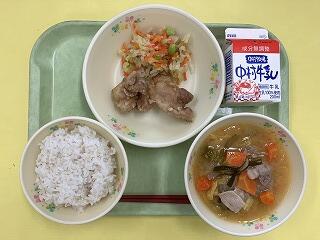 今日の給食は、麦ご飯、キムチ汁、鶏肉の唐揚げ、野菜サラダ、牛乳 でした。程よい辛さのキムチ汁にみんなが大好きな唐揚げと、最強のおかずでした。とてもおいしくて、あっという間に完食しました。ごちそうさまでした。