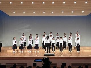 NHK全国学校音楽コンクール宮崎県予選に、高鍋東中選抜チーム16名が出場しました。16名のみんなは、1学期後半から練習を始め、夏休みに入ってからも頑張っていました。惜しくも入賞はできませんでしたが、とても堂々とした態度で素晴らしい歌声を会場いっぱいに響かせてくれました。本当にお疲れさまでした。