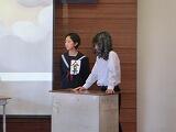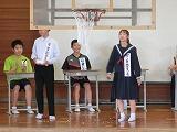 前半は部活動紹介、後半は生徒会役員による学校生活の説明がありました。部活動紹介では、どの部も趣向を凝らしてあり、おもしろく紹介する部もあったり、真剣な練習風景を紹介したりと、部ごとに特色ある発表でした。学校生活の説明では、アニメちびまる子ちゃんの役に扮して、楽しい会話を織り交ぜながら、分かりやすく、興味をひくプレゼンで、大盛り上がりでした。最後の応援団の姿にも感動しました。短い春休みと忙しい新年度の時間を使っての準備・練習、大変ご苦労様でした。慣れない新生活で、緊張していた1年生からもたくさんの笑みがこぼれており幸せな時間を過ごすことができました。