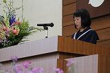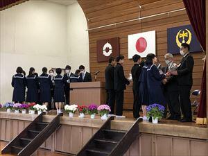 転出される10名の先生方からごあいさつをいただき、生徒会長がお別れの言葉を述べました。最後に生徒会役員が花束を贈呈しました。