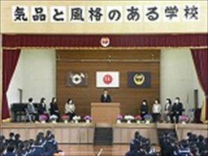 始業式では、新2年、新3年、生徒会役員が立派な抱負を述べました。