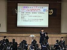 本日、生徒集会がありました。各専門部と執行部から報告やお知らせがありました。いつもながら、発表者が原稿を見ずに全校生徒の前で発表する姿には感心させられます。