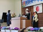 放課後、町中学生海外短期留学派遣事業出発式が行われました。本町から4名の中学生が参加します。