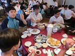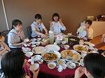 暑い中での活動でしたが、全員、元気にホテルに戻ってきました。班長会を行い、午後6時30分から予定通り楽しい食事です。