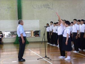 体育館へ入場し、キャプテンを中心に大会への抱負を述べました。