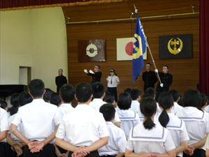 吹奏楽部の演奏に合わせて、各部活動ごとに大きな掛け声とともに