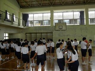 体育大会練習では、フォークダンスの練習をしました。リーダーや3年生が率先してリードしてくれ、和気あいあいとした雰囲気の中、練習が進んでいきました。