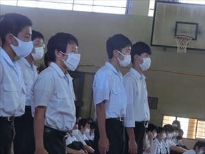17日(金)に「宮崎県中学校特別スポーツ大会2020」と「吹奏楽サマーコンサート」の激励式を体育館で行いました。