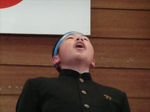 最後に応援団(永友亮雅・松本大駕団長)によるエールのもとに、生徒全員で東中応援歌「栄光をこの胸に」を歌いました。