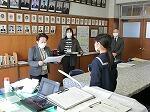 今日から3年生は受験です。ぜひ頑張ってほしいです。校門前の菅原天満宮の梅の花もずいぶん咲き始めています!!昼休みは、教育長、町美術館長が来校されて、読書感想文、感想画の表彰をしていただきました。生徒もとても喜んでいました!!
