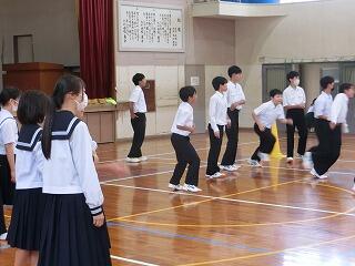 3年生の総務委員会が発案・企画して、クラス対抗ドッジボールが行われました。これは、3年生が後輩たちとの親睦を深めたいという理由で始まったもので、今日は、3年2組 vs 1年2組でした。3年生の男子は利き手と逆の手で投げるというハンデがありましたが、それでも上級生の意地を見せて3年生の勝利でした。他のクラスも応援にかけつけ、体育館は大盛り上がり。とてもいい時間でした。他のクラスの対戦が今後も続きます。