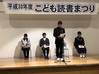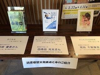 ボランティアグループ「おはなしふうせん」の方々の素晴らしい読み聞かせや昔話のあと、町内小中学校読書感想文発表会および表彰式がありました。4名の発表者は皆、立派に自分の感想を述べていました。