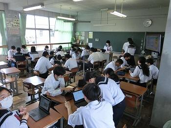 5月7日(火)5時間目、1年生から3年生までの各学級で、5月末(30日)に開催される生徒総会に向けた学級討議を行いました。今日の内容は、生徒総会で提案される各専門委員会の活動計画について、質問や意見を出し合うというもの。どのクラスも真剣に取り組んでいました。生徒みんなのための生徒総会です。みんなの力で成功させましょうね。
