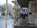 今朝の登校時は、昨夜の安全・安心メールでお知らせしたように、集中豪雨となりました。凄い状況でしたが、想定通り行動がとれてよかったと思います。めったにないことですが、このような時は、体育着を含め着替えを持参する必要があると改めて思ったところでした。朝からバタバタしましたが、廊下のしずくを拭き上げてくれる生徒の皆さんの姿を見て、素晴らしい学校だと改めて思いました。