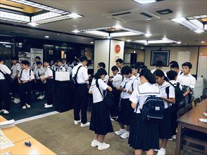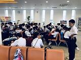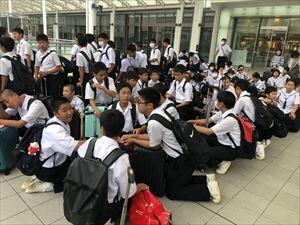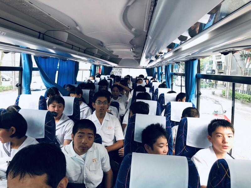 7月1日(月)5時50分、2年生(修学旅行)が町中央公民館前から小倉駅(北九州市)に向かってバス3台で出発しました。