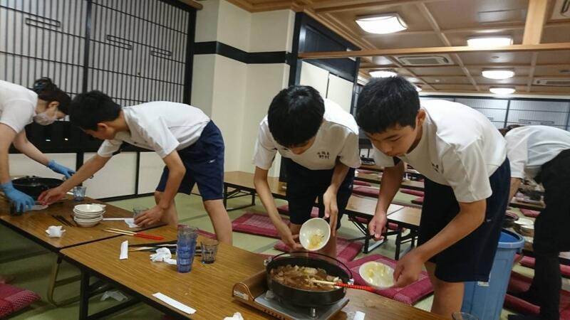 2日目の夕食です。班別自主研修でたくさん歩いたので