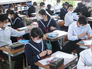 1~3年生で時間をずらしての午前中の登校でしたが、各学年とも生徒の明るく元気な姿を見ることができました。心身の健康や生活状況、学習の取組などの確認を行い、5月6日(水)までの連休中の過ごし方について各学年・学級で指導を行いました。