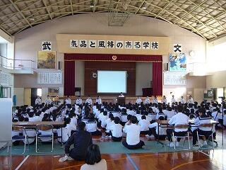養護教諭の先生から資料をいただき、「出会い系サイトの背後に潜むもの」など、全校で性教育に取り組みました。学年ごとに内容を考え、どの学年も真剣に取り組んでいました。